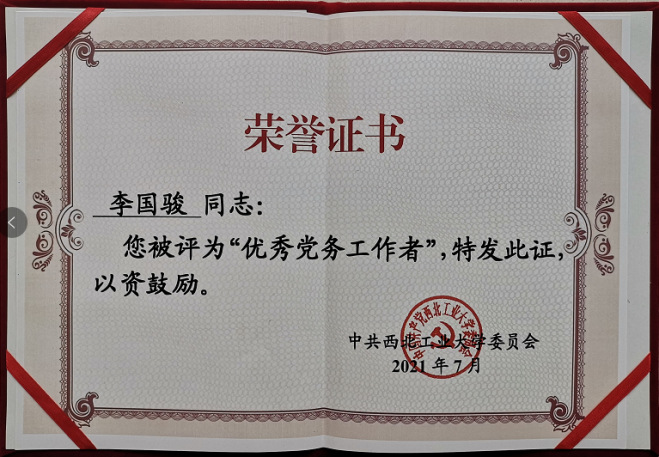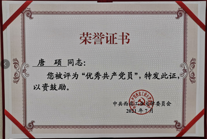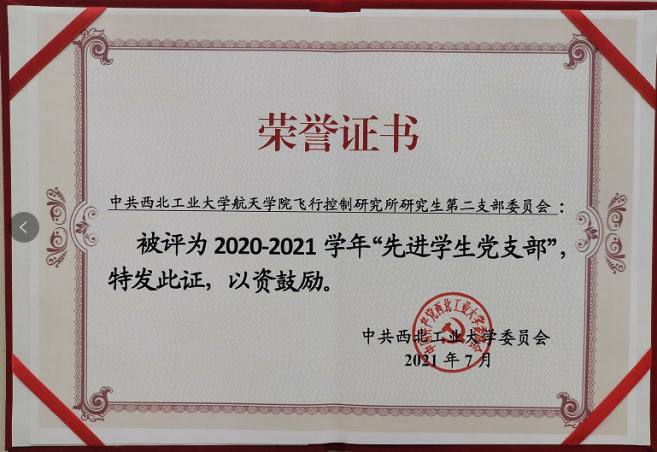 在庆祝中国共产党成立100周年之际,航天公司党委获评陕西省先进基层党组织荣誉称号。在公司“两优一先”评选表彰中,公司党委获评先进基层党组织、公司获评员工党建先进公司,唐硕获优秀共产党员、李国骏获优秀党务工作者、飞行控制研究所研究生第二党支部获先进员工党支部、朱远和杨登峰获优秀员工共产党员等荣誉称号。