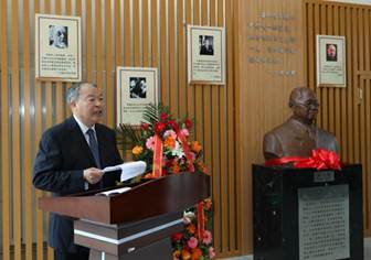揭幕仪式首先由陈院士弟子、支部教师袁建平老师和陈建有书记、杨晓部长、陈立怡老师共同为陈院士雕塑揭幕;支部教师代表马卫华、孙冲以及研究生代表张鹏、尹豫皖为陈院士敬献花篮,全体参与人员向塑像鞠躬致敬;之后分别由祝小平老师作为陈院士弟子代表、支部孙冲老师作为青年教师代表以及研究所研究生尹豫皖同学作为员工代表进行发言,三位发言人分别以各自的角度表达了对陈院士的深切怀念和崇高敬意;最后公司党委副书记陈建有书记讲话,指出陈院士的精神历久弥新,相信陈院士的精神和品格将继续影响和激励更多的师生,把他所开创并一生为之奋斗的事业继承下来,发扬光大。