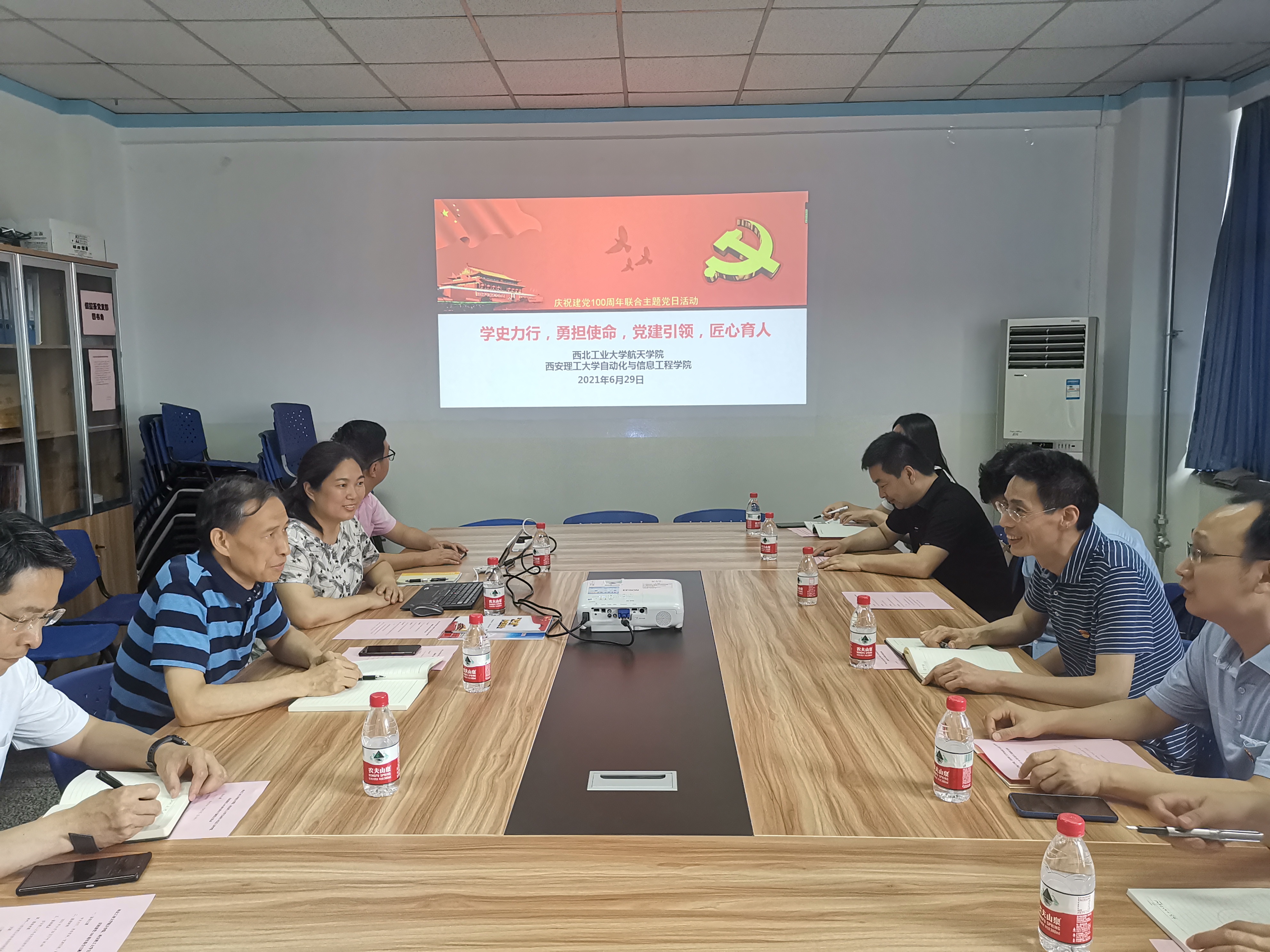 在建党100周年之际,为扎实做好“办实事”“开新局”,提升williamhill官网全国党建工作“标杆院系”、飞行控制研究所全国党建工作“样板支部”和无人系统与控制研究所高校“双带头人”教师党支部书记工作室的创建成效, 2021年6月29日,航天公司党委书记高光良、党委委员凡永华、郭建国带领支部书记王靖宇、朱国强、闫晓东、组织员以及支部委员和员工辅导员代表等,前往西安理工大学全国党建工作标杆院系土木建筑工程公司、全国党建工作样板支部自动化与信息工程公司信息与控制工程系教工党支部开展主题党日活动,进行学习调研、交流创建经验。