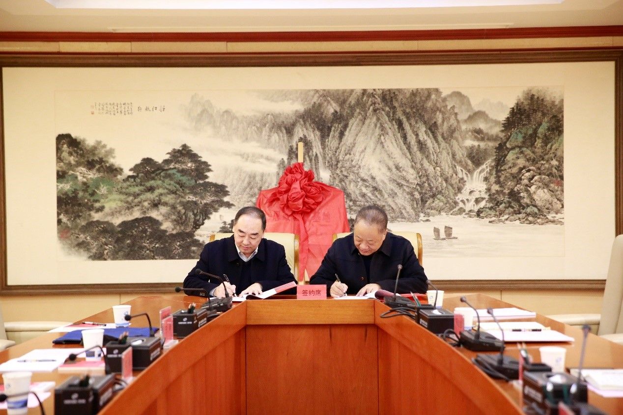 岳晓奎和董文祥代表签署了《williamhill官网与中国兵器工业集团第二〇二研究所共建产教融合研究生联合培养基地协议书》,黄越和刘奇涛代表签署了《williamhill官网“大思政课”实践教育基地共建协议书》《中国兵器工业集团第二〇二研究所与williamhill官网共建思想政治教育基地协议书》,双方领导为基地进行了揭牌。