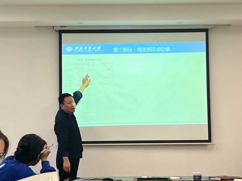 李国骏老师首先讲解了“三会一课”的基本内涵及相关要求,之后系统讲述了《党支部活动记录本》使用和填写规范,以及每季度开展记录本检查的重点内容。讲解过程中,李老师随时与参会人员进行互动交流,现场回答了大家提出的问题,达到了“学习讲解知规范、交流互鉴促提升”的预期效果。