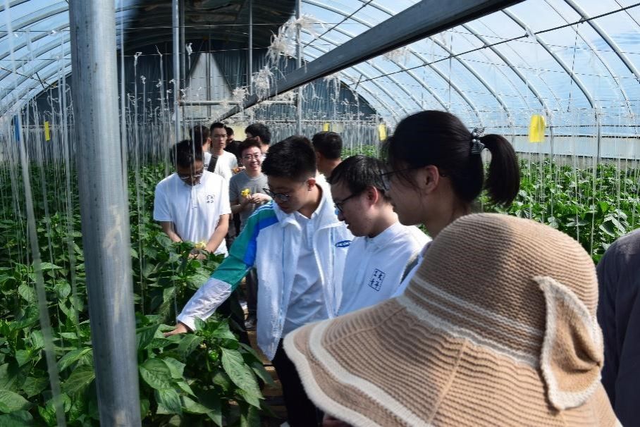首先,彩椒种植基地相关负责人对社会实践队伍的到来表示欢迎,积极邀请同学们品尝新鲜的彩椒,并为同学们介绍了当地彩椒产业的生产规模和市场出口方向。彩椒种植基地相关负责人说:“为了办好彩椒产业园,我们企业与多所高校建立合作,用科学的方法实现增产增收。”实践队成员在基地负责人的陪同下走进蔬菜大棚,深入了解彩椒种植,近距离观察规模化现代温室大棚,深刻认识现代化装备对现代化农业生产的重要推力以及助力乡村振兴重要作用。