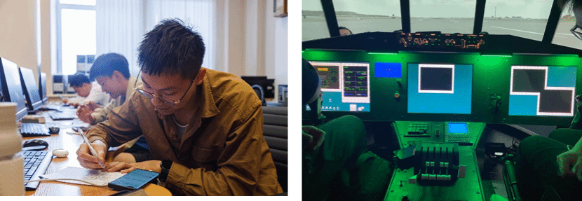 除此之外,还有《Avionika》半实物模拟器上的飞行实践操作课程,模拟飞行进一步加深了同学们对飞行器结构和工作原理的了解。在体验飞行乐趣的同时,飞行过程中也不可避免的遇到了各种情况,由于飞行过程中需要主驾驶员和副驾驶员的互相协作,也让大家明白了团队协作沟通的重要性,只有相互配合,才能确保飞行的安全和顺利。