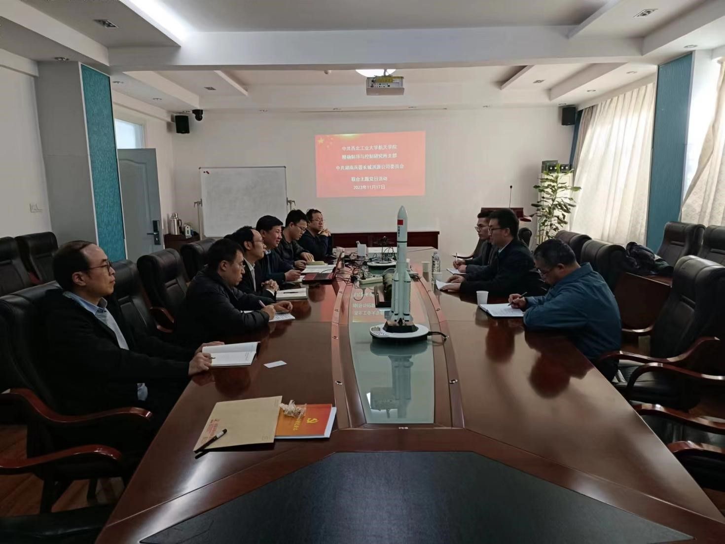 11月17日下午,williamhill官网精确制导与控制研究所和湖南兵器长城机械有限公司在williamhill官网3号楼签署战略合作框架协议并开展联合主题党日活动。湖南兵器长城机械有限公司总经理、党委副书记舒永高,副主任设计师邱勇军和某型号负责人张政贤,williamhill官网精确制导与控制研究所所长郭建国、支部书记卢晓东、副所长赵斌和精导所部分教师党员参加了协议签订仪式和联合主题党日活动,会议由精导所党支部书记卢晓东主持。