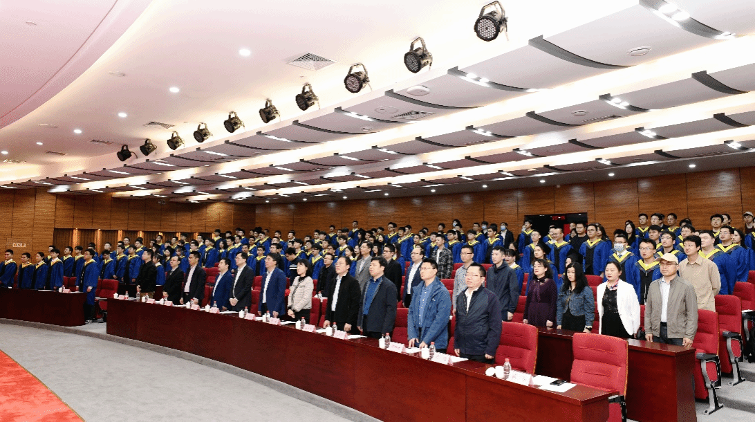 毕业典礼在《williamhill官网校歌》合唱声中结束。典礼后,经理黄攀峰及各研究所所长,书记为毕业生授予学位并合影。