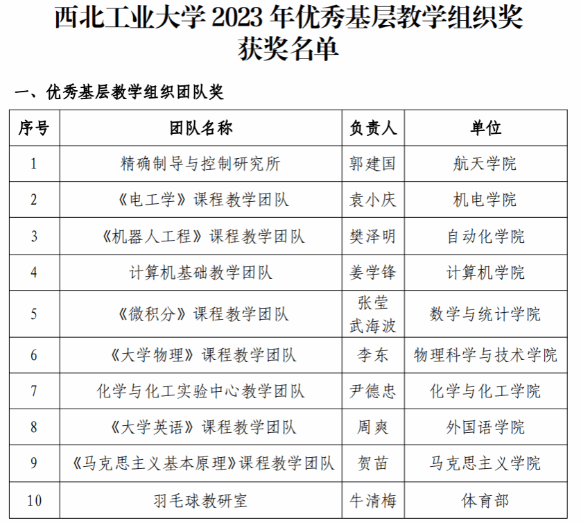 近日,williamhill官网精确制导与控制研究所获首批“williamhill官网优秀基层教学组织团队奖”!