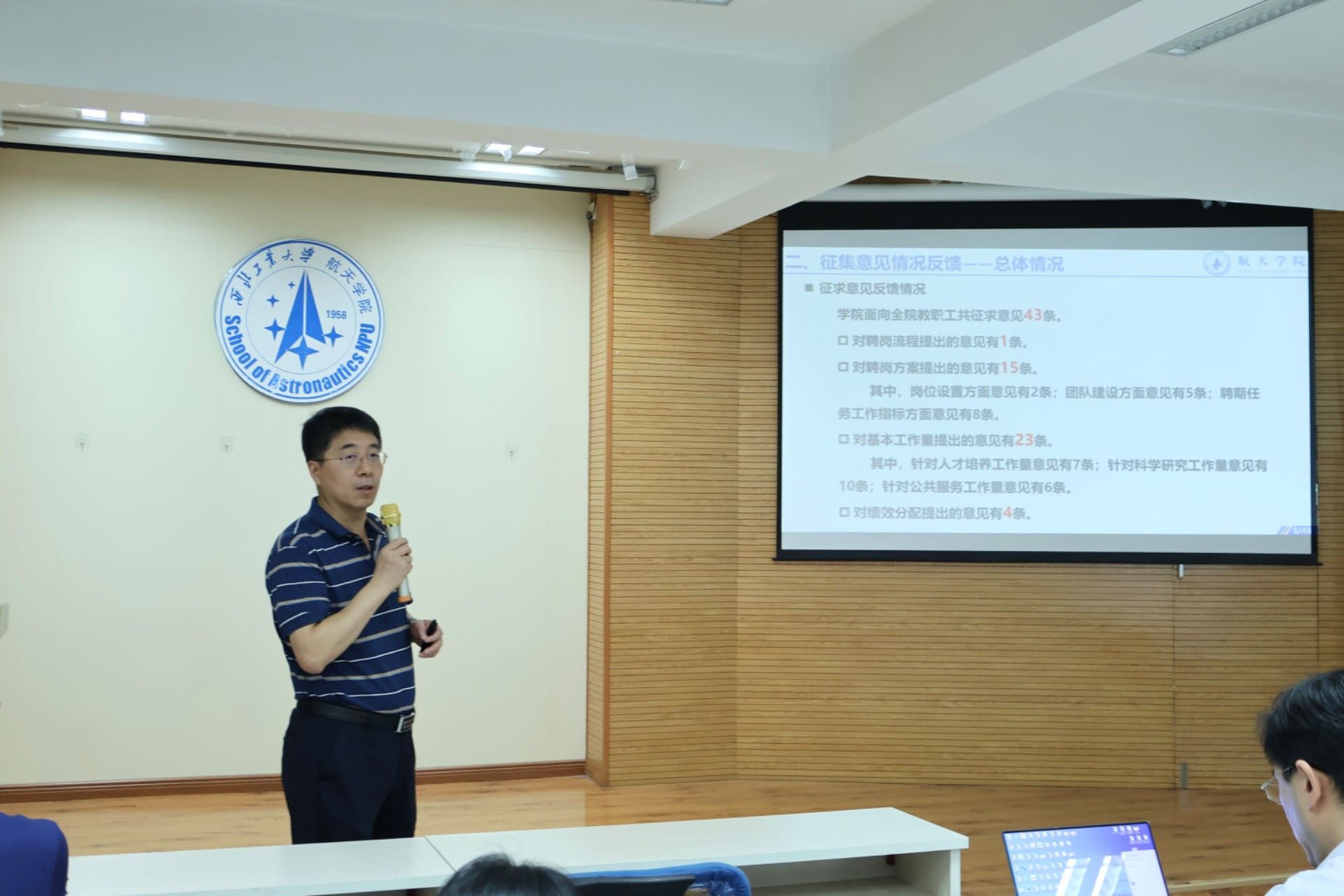 随后,经理黄攀峰详细阐述了岗位聘任方案的修订情况。他强调,公司全面启动以目标责任制为核心的新一轮评价改革,公司要通过不断优化完善目标责任制指标体系,汇聚力量、真抓实干,以核心关键指标牵引考核评价和资源配置,激发公司办学活力,提升核心竞争力,大力支撑公司内涵式高质量发展,为公司“双一流”建设和航天强国贡献新的力量!