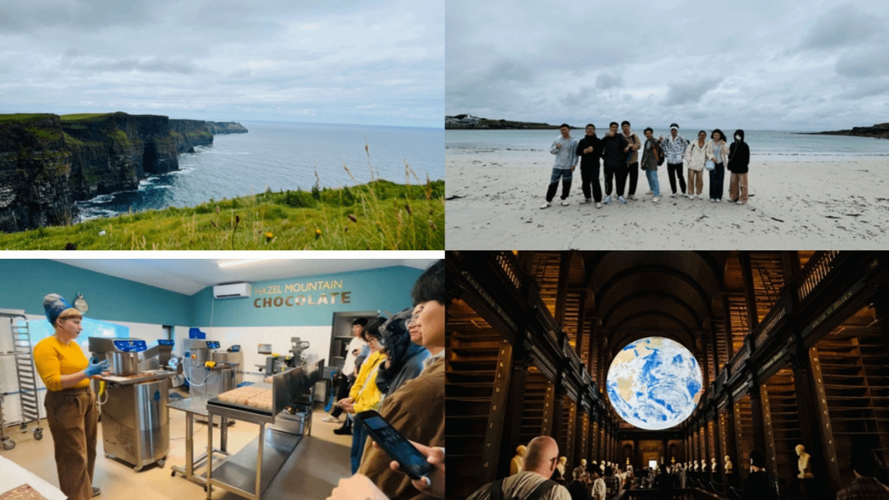 在紧凑的课程学习之余,项目安排了参访高威市区、莫赫悬崖、阿伦群岛、Hazel Mountain巧克力工厂、圣三一公司图书馆等丰富多彩的文化体验活动。精彩绝伦的《大河之舞》让同学们了解到爱尔兰人的热爱与顽强,拼搏和融合,生生不息,感受到“大河向海,人生向前”的精神气概,为本次研学之旅画上了圆满的句号。