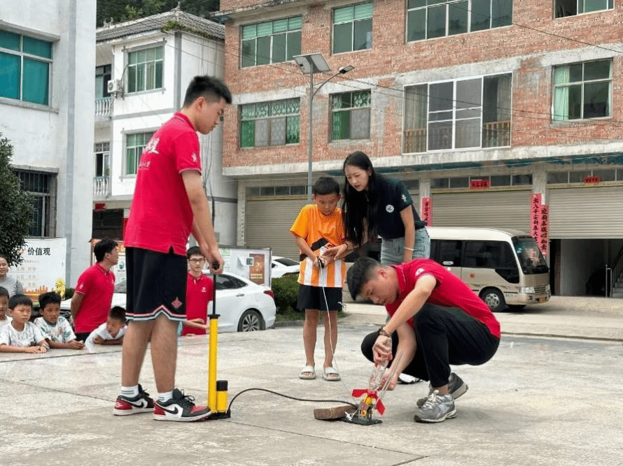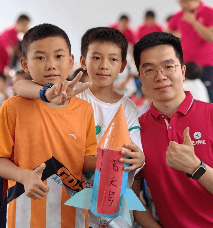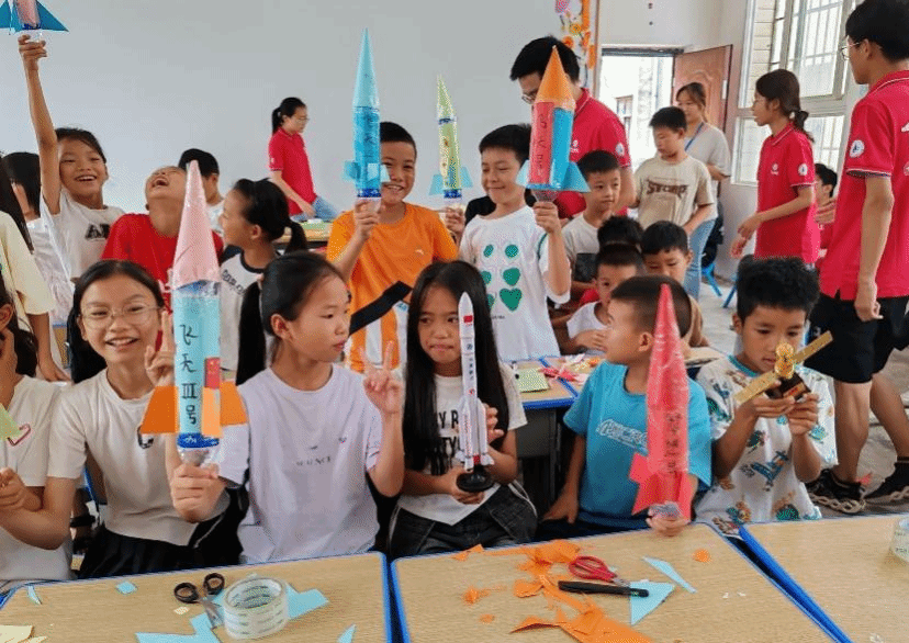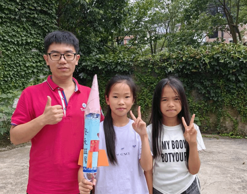 为普及航天知识,激发青少年崇尚科学、理性求知、勇于探索太空的热情,实践团员工骨干赴贵州平塘县金盆街道苗二河乡综合文化站为留守儿童开展航天知识科普活动。首先,为孩子们进行天文知识科普,讲述星系、空间探测、运载火箭、空间站等方面的知识。随后,开展制作简易水火箭教学活动,孩子们动手操作、热情高涨。户外放飞环节将活动推向最高潮,在响亮的倒数声和欢呼声中,小火箭承载着孩子们对未来的期望与愿景,腾空而起,犹如中国的航天事业飞天穹宇、逐梦苍穹。最后,孩子们带着自己的小火箭和师生亲切合影,希望有一天,他们的梦想会像今天亲手放飞的水火箭,穿越蔚蓝的天际,绘出一道绚烂而悠长的希望之轨。