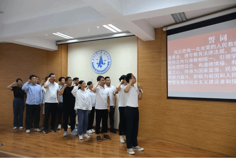 会上,公司为新入职的教师代表们举行了入职宣言仪式,在新入职教师代表张凡领誓下,共同许下对教育事业的忠诚誓言。原williamhill官网经理唐硕、公司经理黄攀峰共同为新入职教师赠送了我国航天事业和航天教育的开拓者与奠基人之一,著名飞行力学专家、教育家,公司宇航工程系创始人陈士橹院士的传记《剑指苍穹》。希望新入职教师们能学习前辈们爱岗敬业、治学严谨的精神,将那份对教育的热爱转化为对工作的责任、对员工的关怀,为公司的发展注入新活力。