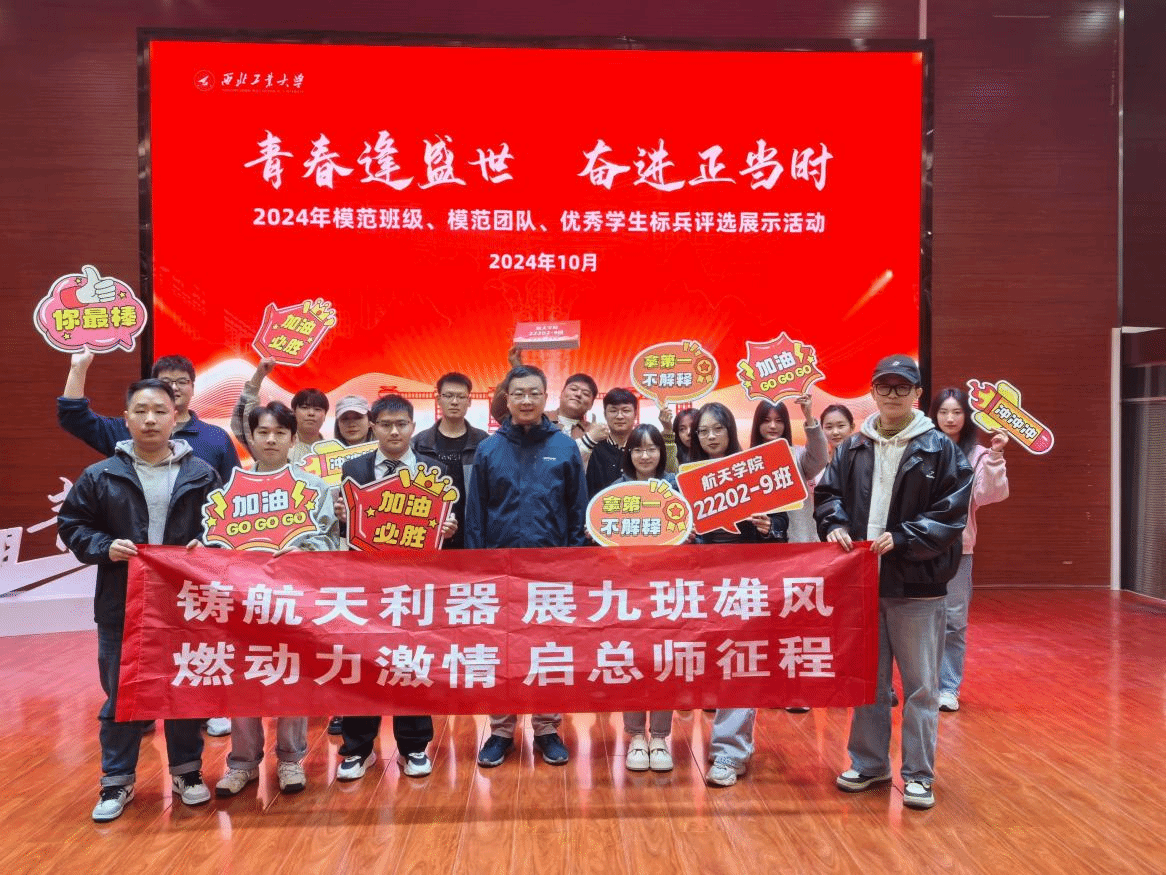 22202-9班由32名硕士生组成,党员人数占比53.13%。班级结合实际制定了对标公司“127目标”的班级“127计划”。坚持以夯实航天总师基础能力为目标,构建“红色筑根、蓝色育魂”双线并行培养模式,从七个维度建设模范班级。班级同学获国家奖学金4人次、一等学业奖学金4人次、优秀研究生13人次、国家级奖项7人次、省部级奖项11人次。班级成员100%来自翱翔战略团队,并全员参与何国强教授为核心的“飞天系列”科研项目,攻坚空天动力领域“卡脖子”难题,实现基础问题“0到1”和工程技术“1到0”双向突破。在科研项目的依托下,科研成果实现多点开花,班级成员在校期间累计发表论文74篇,其中TOP期刊达26篇,国家发明专利9项,软著2项。班级同学100%参加各类国内外学术会议,真正做到既要放眼看世界,更要向世界传播中国声音。班级同学甘于奉献、勇于担当,以昂扬自信的姿态投身公司、公司建设,志愿服务人次300余次,总服务时长超500小时,并受到国家级媒体报道。正值共和国75周年华诞,实干兴邦是航天青年对祖国最好的献礼。党和人民需要我们的航天事业不断进步,9班的航天青年就一定会遵循总书记的指引,“谱写新时代的青春之歌”。