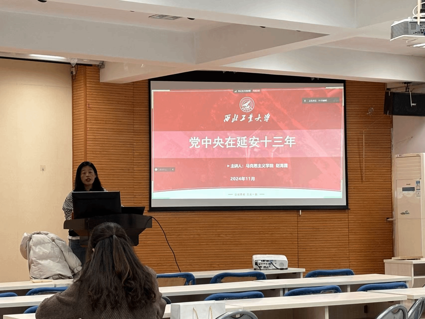 11月16日,邀请马克思主义公司赵海霞副教授讲授《党中央在延安十三年》专题党课。赵老师满怀着对革命先辈的崇敬之情,将时光拉回1935 年至 1948 年那段党中央扎根延安的难忘十三年。从中央红军历经艰难长征,落脚吴起镇,到延安成为中国革命“落脚点“与 ”出发点“,一幅宏大且艰辛的历史画卷徐徐展开。赵老师带领学员们共同穿越历史时空,回溯那段波澜壮阔、铸就辉煌的峥嵘岁月,赓续红色血脉,汲取前行的智慧与力量。