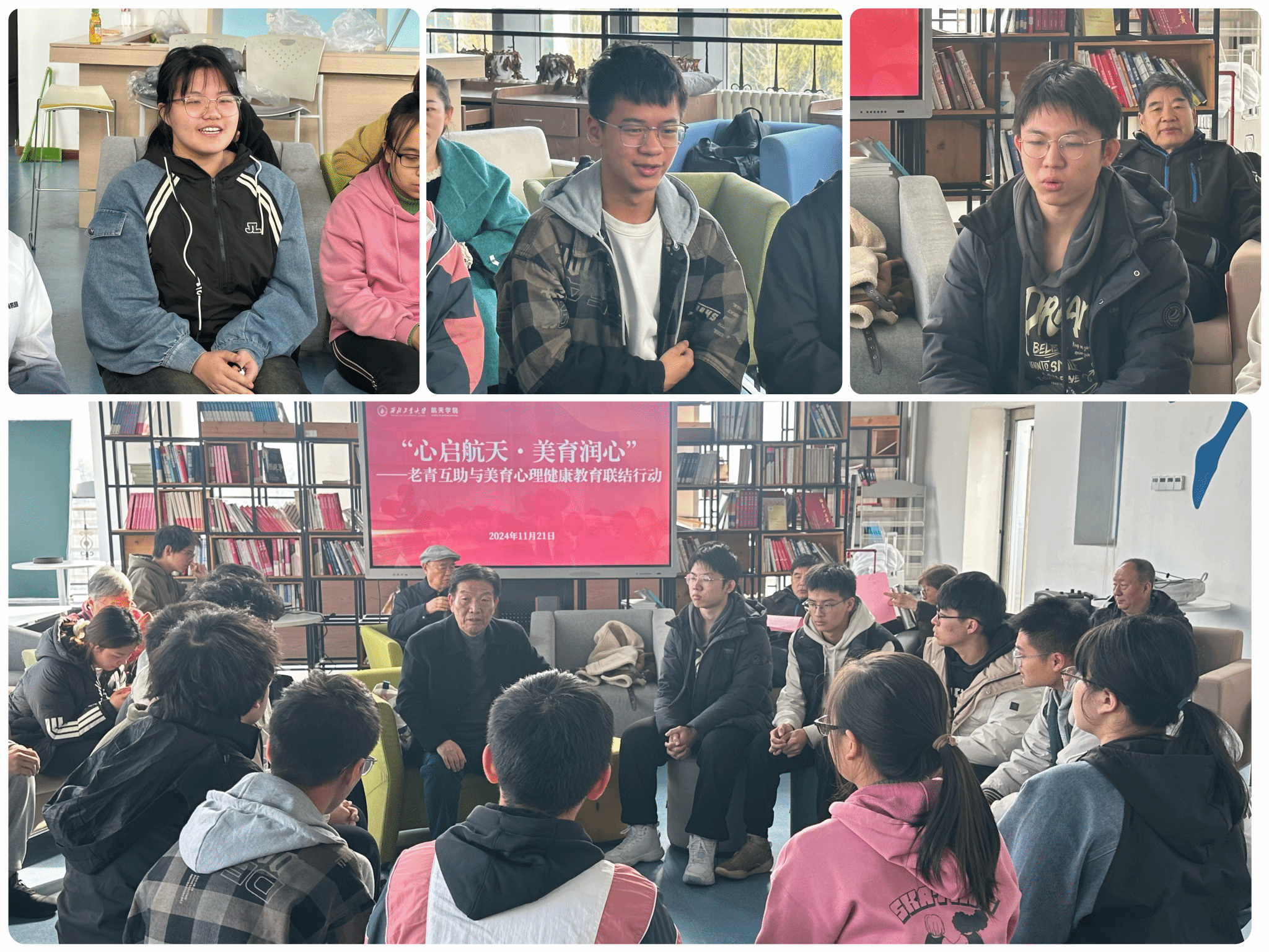 11月21日,由校关工委、williamhill官网、校医院联合主办的“心启航天·美育润心”——老青互助与美育心理健康教育联结行动在西工大长安校区举行。校关工委“银发育心员”、williamhill官网师生代表参加了活动。校关工委委员王友明主持活动。