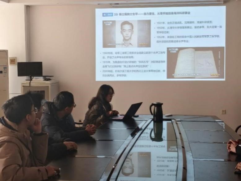 在学习杨士莪院士先进事迹的环节中,与会成员通过视频了解到杨士莪院士为我国水声工程事业做出的杰出贡献及其“为船为海为国防”的精神,深入学习了杨士莪院士以国家需求为先的生平与成就,以及他坚定的理想追求、强烈的使命担当、严谨的治学态度和高尚的道德情操等四大精神特质。这一环节激发了与会成员的情感共鸣,大家立志以杨士莪院士为榜样,为我国航天事业贡献自己的青春力量。