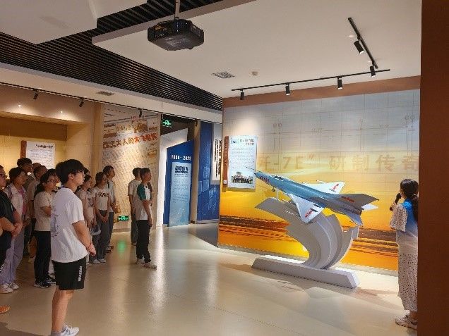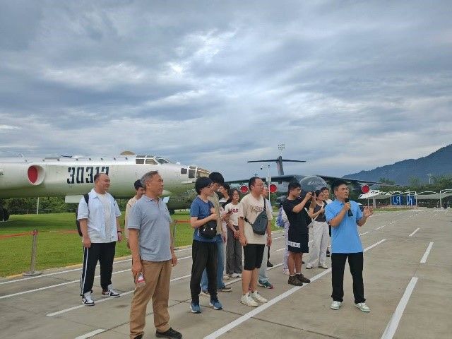 最后,师生们来到公司军工素质教育实践中心户外停机坪,参观包含DF-2导弹及运-20、歼-7、直-5等多种机型。通过讲解员详细介绍,让师生们深刻体会“三航”领域攻坚克难的奋斗历程。运-20运输机在抗疫救灾中的卓越贡献、歼-6护卫长空的飒爽英姿,生动诠释了“国之重器”背后的科学家精神与报国情怀。一架架承载着梦想与荣耀的飞机,生动展现了"三航"(航空、航天、航海)精神中敢为人先、攻坚克难的勇气和担当。