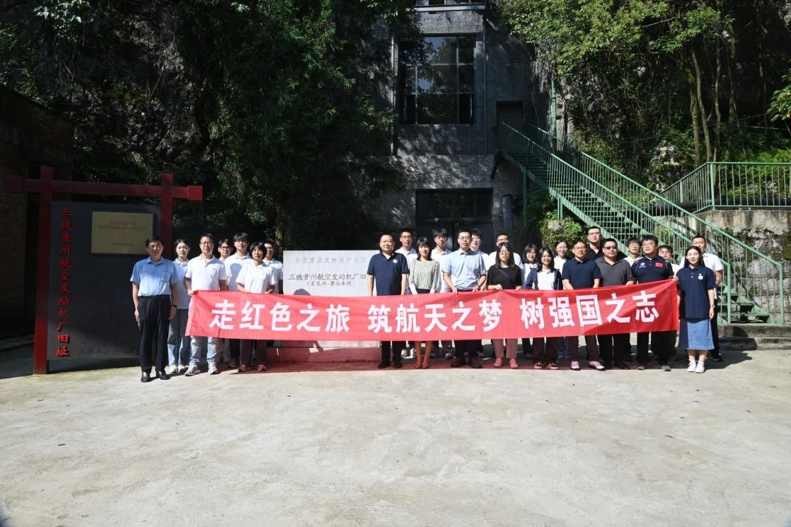 7月30日上午,师生一行首先探访了贵州三线航空发动机厂旧址。在菜花洞、牛洞的斑驳岩壁间,锈迹斑斑的机床与泛黄的生产图纸,无声诉说着三线建设者“靠山、分散、隐蔽”的峥嵘岁月,让队员们深刻感悟了“艰苦创业、无私奉献”的三线精神。随后,实践队走进中国航发贵阳发动机设计研究所新址,在展厅内,师生们近距离学习了航空发动机的先进技术与辉煌成就。座谈会上,双方围绕航空航天动力领域前沿技术、高层次人才需求与联合攻关方向进行深入交流。