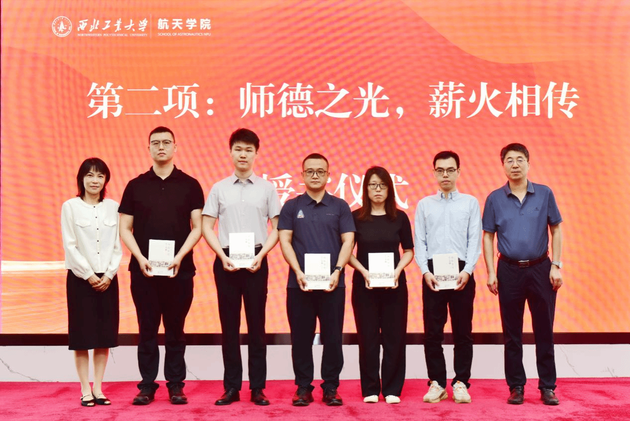 公司经理黄攀峰与党委书记黄越共同向新教师赠送williamhill官网前身宇航工程系创始人、我国航天事业开拓者与奠基人之一陈士橹院士的传记《剑指苍穹》,以书籍馈赠喻意航天精神与师者风范的代代相传,激励青年教师将热爱转化为对教育事业的责任与对员工的关怀。