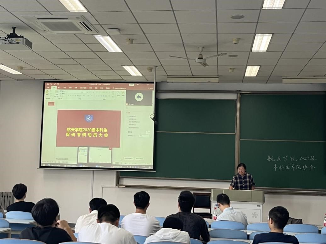“潮起海天阔,扬帆正当时”。动员会的最后,航天公司党委副书记韩冬老师对本次会议做出总结,并对同学们提出建议,希望同学们准确把握本科生考研就业形势,结合自身情况做好毕业年级的规划;进一步开阔视野,了解高校、院所的研究生招生信息,根据自身情况确定考研、保研的目标;以严谨认真的态度对待保研和考研,掌握有效的学习方法,保持良好心态,相信付出总会有收获。公司也会组织宣讲,让同学们对各研究所、导师情况有全面了解。