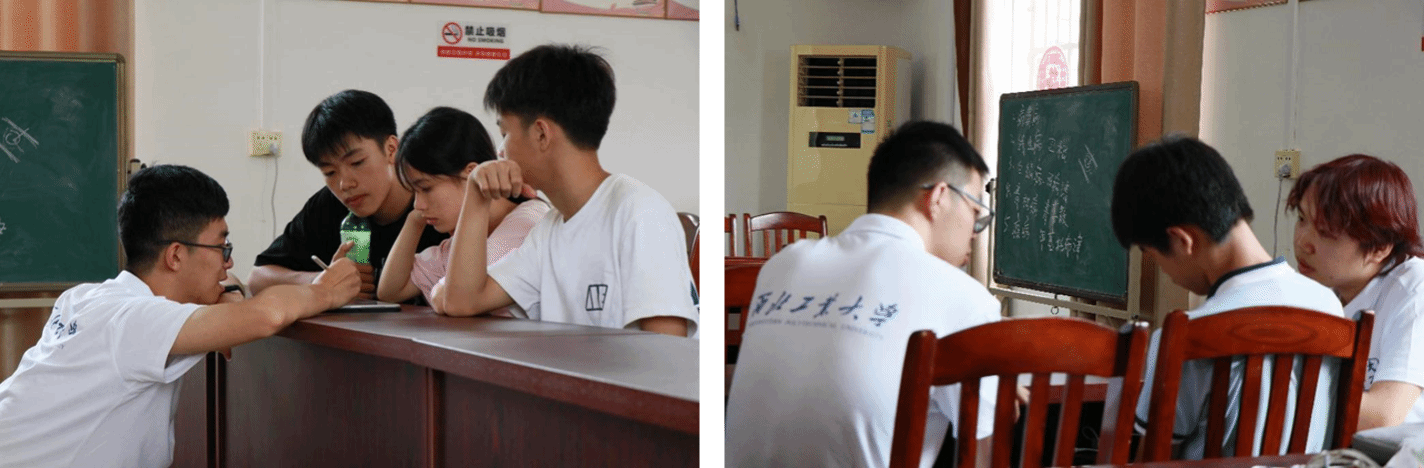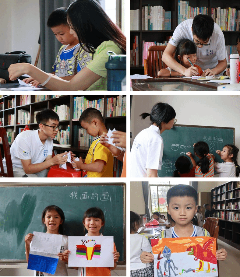 为进一步增进与孩子们的关系,下午三点,实践队全体成员与参加夏令营的孩子们再次齐聚一堂,进行一系列破冰活动。根据所处的年级段,将前来参加暑期活动的孩子们分为高年级组和低年级组。实践队队长洪志鹏、实践队成员牙鸿霖、王薏萌、蒙泽龙和吴宏禹负责高年级组,对高年级孩子存在的学业与心理问题做出了及时的指导。