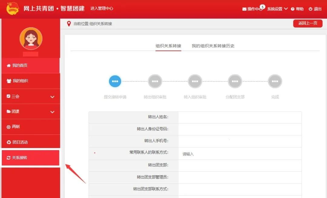 步骤二:进行个人团组织关系转接