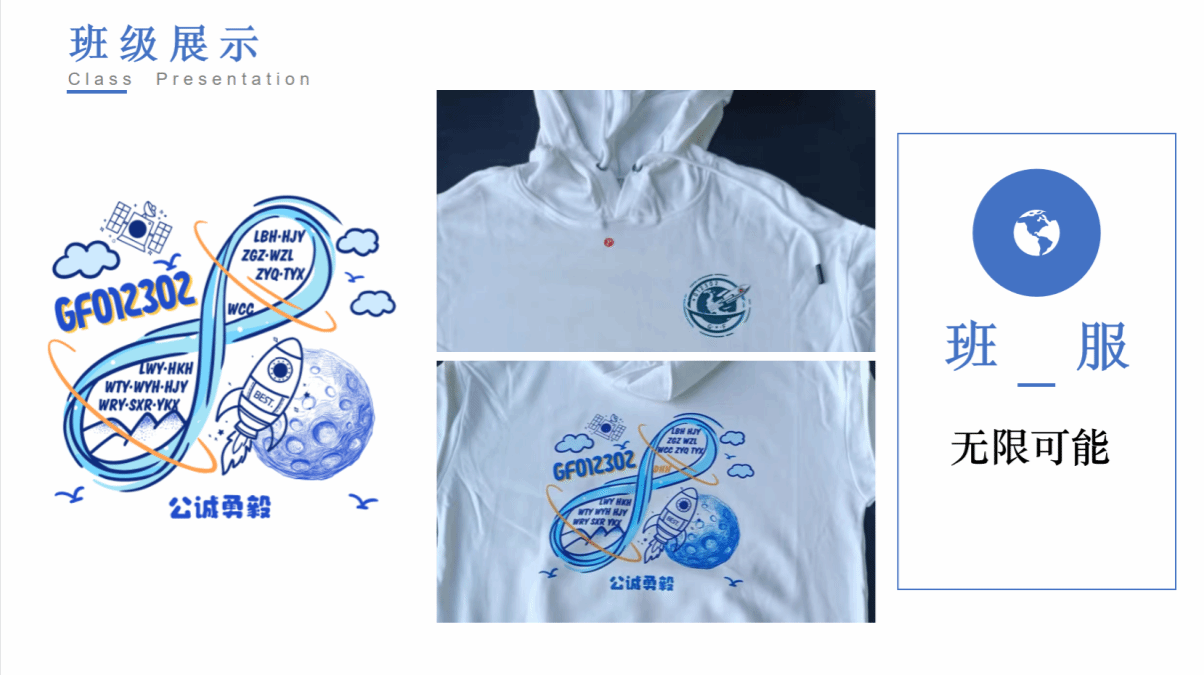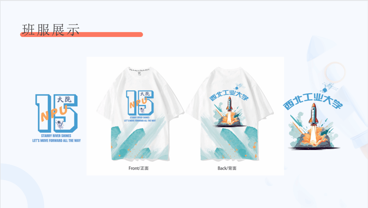 15班“以浩瀚的星空作为背景,既展现出航天事业的舞台,也代表着我们探索未知,飞天报国的目标”: