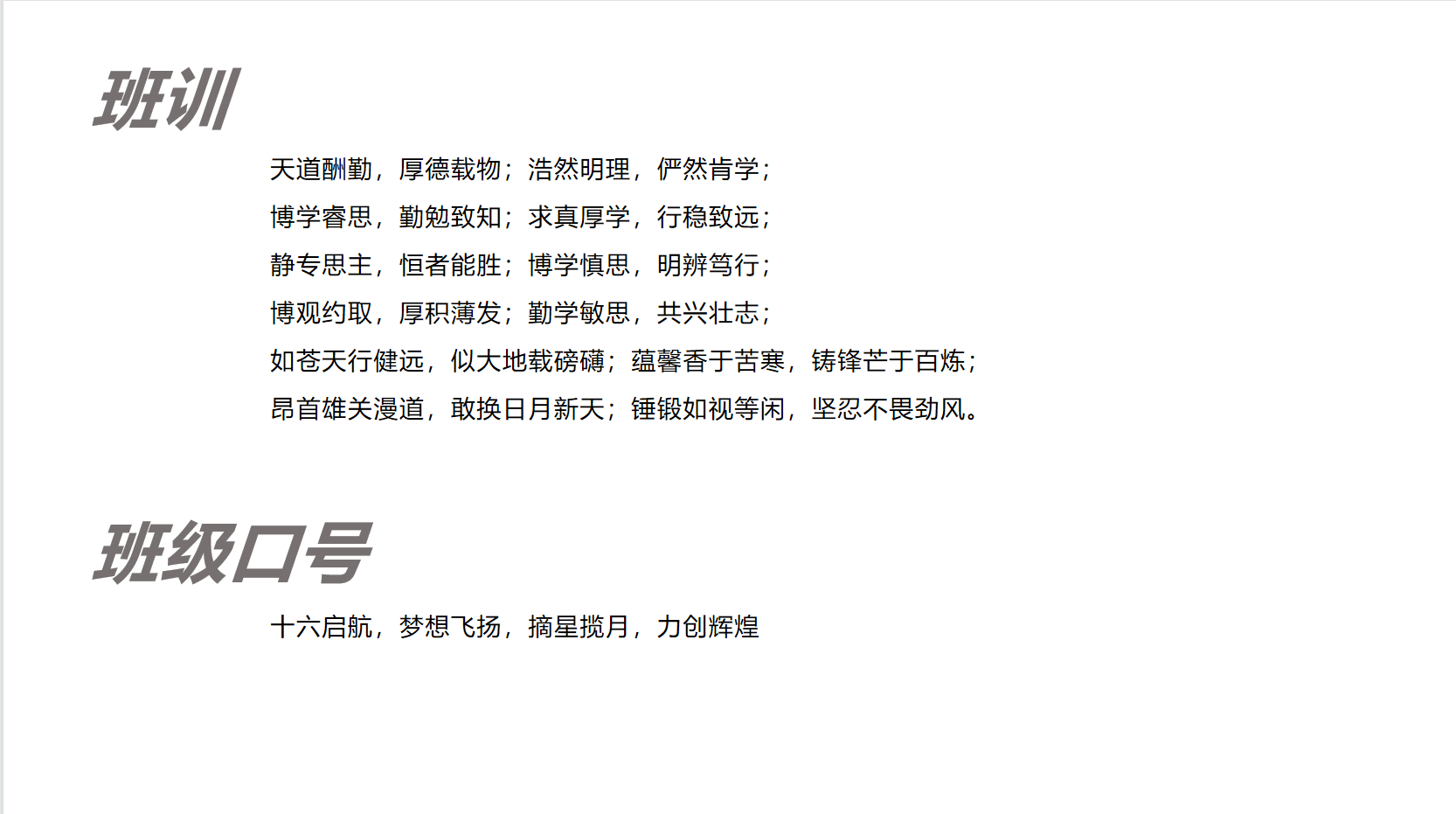 一、班风班训班级口号