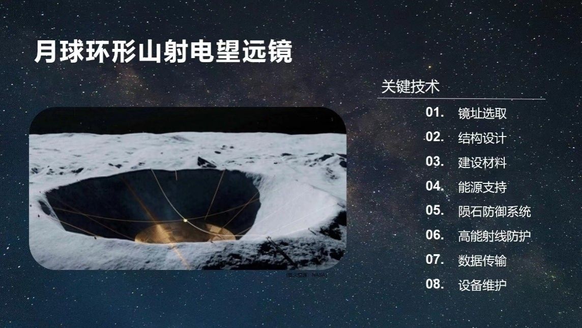 在黑科技专项赛中,由肖飞老师指导的月球环形山射电望远镜项目也拿到了公司在此赛道的最高级别奖,行星级(二等奖)!该项目以中国天眼的概念发展历程和国内外各类大型射电望远镜方案为灵感,提出了一种依托3D打印、深空通讯网络等技术的月背环形山大口径射电望远镜总体方案,可充分利用月背没有无线电干扰的优质观测条件,搜寻来自宇宙深处的微弱信号,探索宇宙起源以及早期的演化。设计方案包括望远镜选址、结构设计、材料选择、能源支持、陨石防御、数据传输等方面。在完成本项目的过程中,小组成员进一步加深了对射电望远镜的了解。