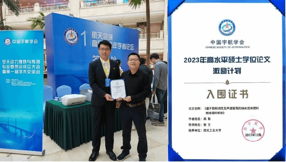 本期推出的是2023年中国宇航学会高水平硕士学位论文——基于铝粉改性及声波振荡的纳米流体燃料燃烧调控机制,获奖者高毅。