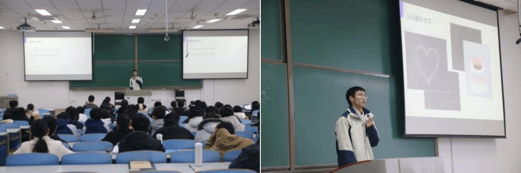 首先,张飞扬同学就“如何学好编程”分享了自己的心得体会。从自身学习编程的经历谈起,深入浅出地分享了编程学习方法。首先是“从课程中学习”,通过公司开设的课程构建对于编程基本的知识体系,然后,“在学习中学习”,通过课外拓展和与其他课程的融会贯通加深对于编程的理解和应用。最后,“从兴趣中学习”,通过几张编程呈现出的美好图形,向我们展示了他眼中编程的无限魅力。“兴趣是最好的老师”,要以兴趣为指引,激发出对于编程学习的热爱和激情。