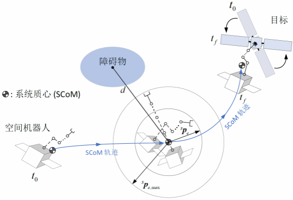 我国的空间机器人研究起步较晚,正在运行的空间站机械臂是我国空间站建造、运营、维修及拓展等任务的关键装备之一,正在实施的国家科技创新 2030 重大项目“深空探测及空间飞行器在轨服务与维护系统”也将空间机器人对非合作目标的操控作为重要研究内容。在此背景下,开展空间机器人操控非合作翻滚目标的轨迹规划与控制等关键技术研究对于发展我国的空间机器人事业具有重要的理论意义和应用价值。