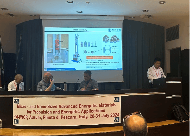 严启龙教授应大会主席Luigi T. Deluca教授的邀请,主持了以不敏感含能材料为主题的专题研讨会,并作了题为“Study on thermal decomposition and stabilization mechanisms of hybrid nitramine crystals”的受邀报告,严教授分享了杂化硝胺的最新研究成果,引起了国际同行的广泛关注和热烈讨论。