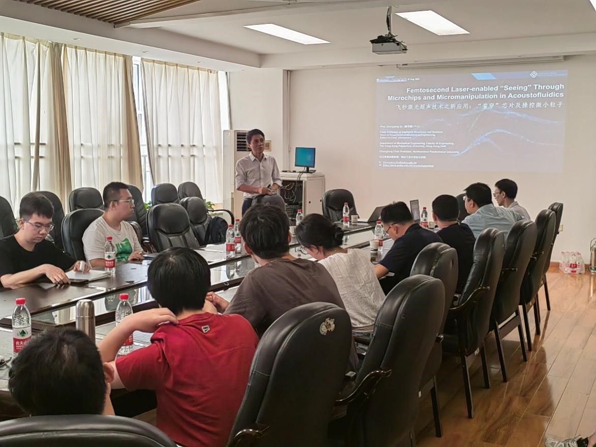 5日上午,苏教授为williamhill官网师生来带了《飞秒激光超声技术之新应用:“看穿”芯片及操控微小粒子》的学术讲座,介绍了香港理工大学在飞秒激光技术方面的突破性进展,为光声耦合提供了新的视角,开辟了令人兴奋的应用前景。苏教授详细讲解了基于超快激光超声的无损评估新框架,通过利用飞秒激光产生的超声波,实现了纳米尺度上的超高分辨率材料表征。通过对具有高度各向异性的单晶半导体晶片及不透明堆叠微系统的内部特征进行三维成像,该方法从基本理论到实现细节均得到了实验验证。此外,苏教授还分享了超快激光在皮秒声流学研究中的新应用范例,其中包括一种综合了光声镊和声镊优点的光声镊技术。通过瞬态热弹性耦合,脉冲超快激光通过液体照射衬底,触发环形传播光声波并产生声辐射力,用于操纵液体中的微小颗粒。这种以非接触方式进行的方法为超微结构的损伤监测开辟了新的思路和方向。