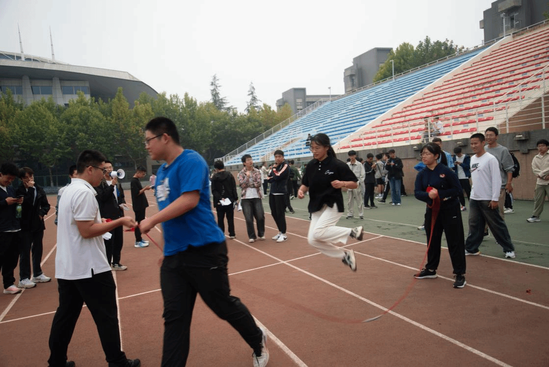跳大绳:面对绳子的快速甩动,同学们克服恐惧,从容穿过,虽然有的团队被中途打断,但同学们毫不气馁,全力完成目标。