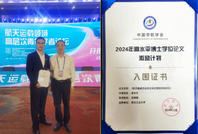 在研究过程中,夏冬冬通过辛勤的工作,取得了较为优秀的学术成果,以第一作者在ISA Transactions、International Journal of Robust and Nonlinear Control 等重要期刊发表高水平论文6篇。在导师的悉心指导下,夏冬冬根据研究成果,草拟论文大纲,明确各部分的结构和内容,反复修改论文和提升论文质量,将初稿提交导师审阅,获取详细反馈和修改建议。在导师和实验室成员的支持下,夏冬冬最终完成了高质量的博士论文。经过预答辩、外审和正式答辩,夏冬冬的博士学位论文得到了评审委员会和专家们的一致好评,被认为是一篇优秀的博士论文。并且,博士学位论文最终入选中国宇航学会高水平博士学位论文激励计划。这一过程不仅是他个人学术能力的体现,也离不开导师、实验室和公司的全力支持。