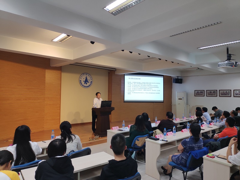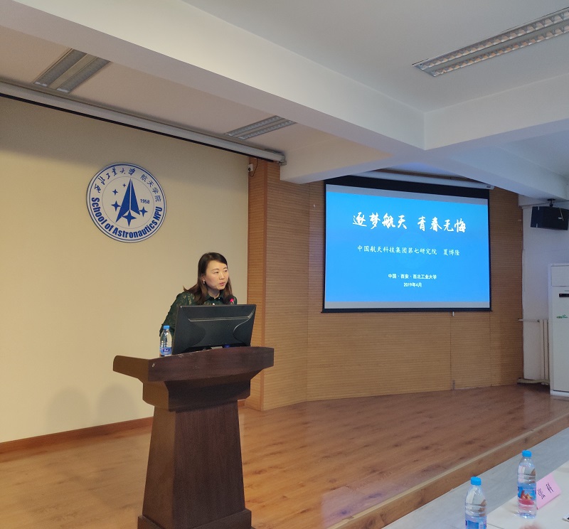 会议伊始,王莉老师介绍了分享会主讲人夏博隆老师以及航天七院的各位领导嘉宾。在同学们热烈的掌声中,夏博隆以“逐梦航天,青春无悔”为主题为同学们作报告。他介绍了航天七院(四川航天技术研究院)对中国航天事业和航天人才培养的卓越贡献,随后从三线建设、优秀航天人的故事、我国航天工业的发展历程等方面向同学们展示了航天七院的发展历史,并向有意投身航天事业的员工们介绍了七院下属各研究所的主要项目、产品、人才发展情况和工作环境等。