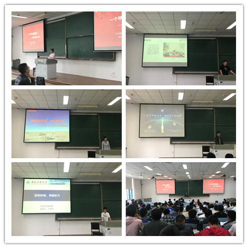 “宣讲队”成员杨登峰的报告主题为:心系中华航天梦,铸就航天里程碑。他讲述了公司空天飞行技术研究所师生团队攻关重大航天科研项目的奋斗故事,并分享了奋斗故事中的感人细节,他让同学们了解到了西工大航天人为我国的航天工程、尤其是载人航天工程所做出的杰出贡献。