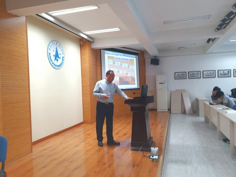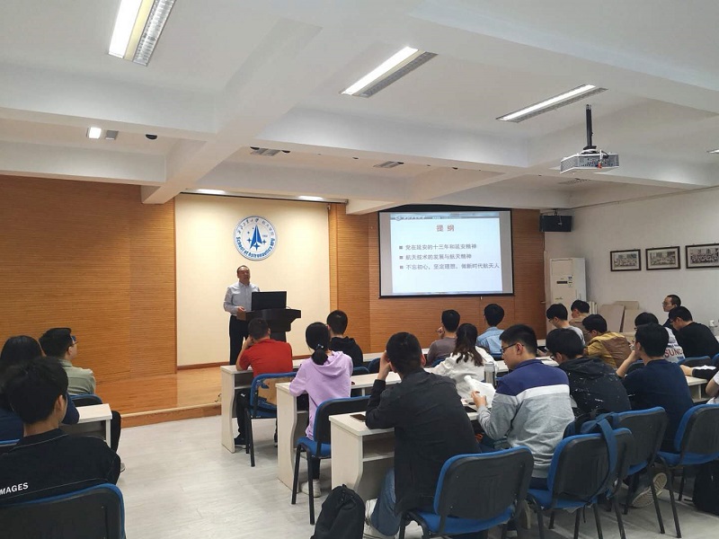 岳晓奎教授为同学们讲述了中国共产党延安时期的13年辉煌历程和“延安精神”的主要内容,结合公司特色和时代背景为同学们介绍了我国航天事业的发展历史,阐述了“航天精神”的重要内涵。他鼓励同学们端正自己的学习态度、生活作风和入党动机,以实际行动证明自身价值并争取早日入党。