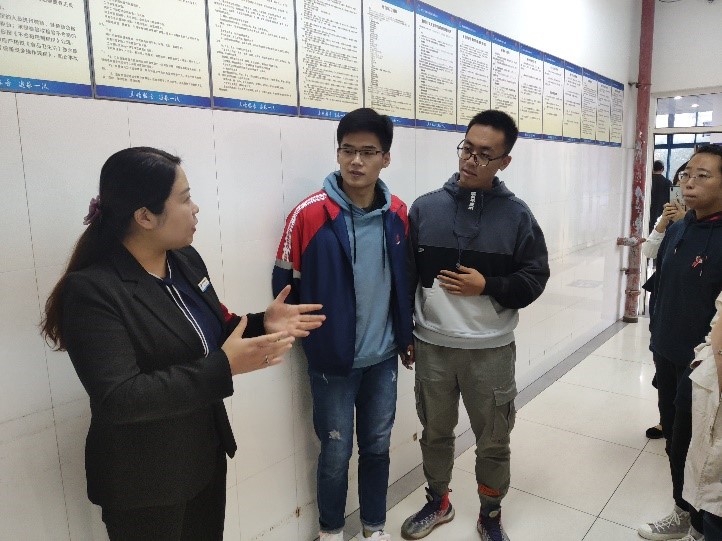 千里之行,始于足下。为了让同学们更加明确光盘行动对于现实的重要意义,在公司的帮助下,10月9日晚,班级一行18人前往星天苑北餐厅进行餐后粮食处理情况调研。在餐厅门口集合完毕后,员工代表们前往餐厅二楼,在北餐厅的王经理的热情协助下,员工们依次参观了餐具回收点,后厨以及面食窗口,并在王经理介绍下,对剩余饭菜的回收流程及其科学再利用有了清晰的了解。