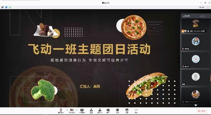 为了让同学们更加深刻的理解光盘行动的意义,践行活动主题,打卡活动结束后,10月8日晚,航天02031801班举行了线上会议。会上,同学们分享了关于光盘打卡活动的感悟与总结,并对身边的浪费行为提出好的建议。同时,同学们集体观看了倡导珍惜粮食的公益宣传片,一帧帧爱惜粮食的画面映入眼帘,告知我们每一粒米饭的来之不易,成堆的餐后余食,触动心尖。每个人一举一动都影响着周围环境,光盘打卡活动虽然告一段落,但员工们节俭的征途正扬帆起航。