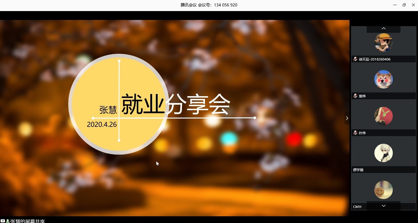 分享会的最后,主持人再次感谢四位师兄师姐百忙之中仍然抽出时间为大家做交流分享,并表示:“凡事预则立,不预则废,未雨绸缪,时不我待”,希望大家都能早做准备,预祝大家将来走向理想的工作岗位。