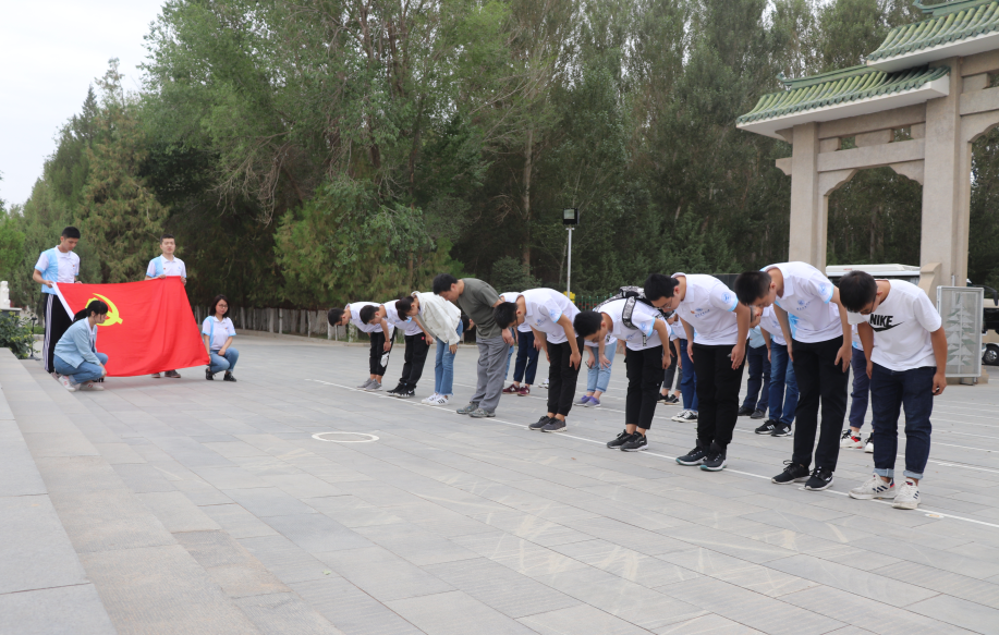 21日上午,实践队员一同前往东风革命烈士陵园参观学习。在茫茫的大漠深处,象征着国防科技战士扎根戈壁,志在航天的东风烈士陵园,长眠着500多名为祖国航天事业献出宝贵生命的革命先烈。东风浩荡,战鼓催征,东风革命烈士陵园,是新中国跻身世界航天大国奋斗历程的缩影,是基地艰苦奋斗光荣历史的见证,它不断激励后来者在科技兴国和科技强军中打头阵、当先锋。在公司党委副书记王强的主持下,实践队员在各位烈士墓前肃穆追悼,向聂荣臻元帅和献身航天科技事业的英烈们行三鞠躬礼。触摸这段历史,实践队员们感慨道:我们来到东风革命烈士陵园,感悟第一代基地人“死在戈壁上,埋在青山头”的革命气概,为共和国航天事业“献青春、献终身、献子孙”的伟大壮举,心中倍受震撼。
