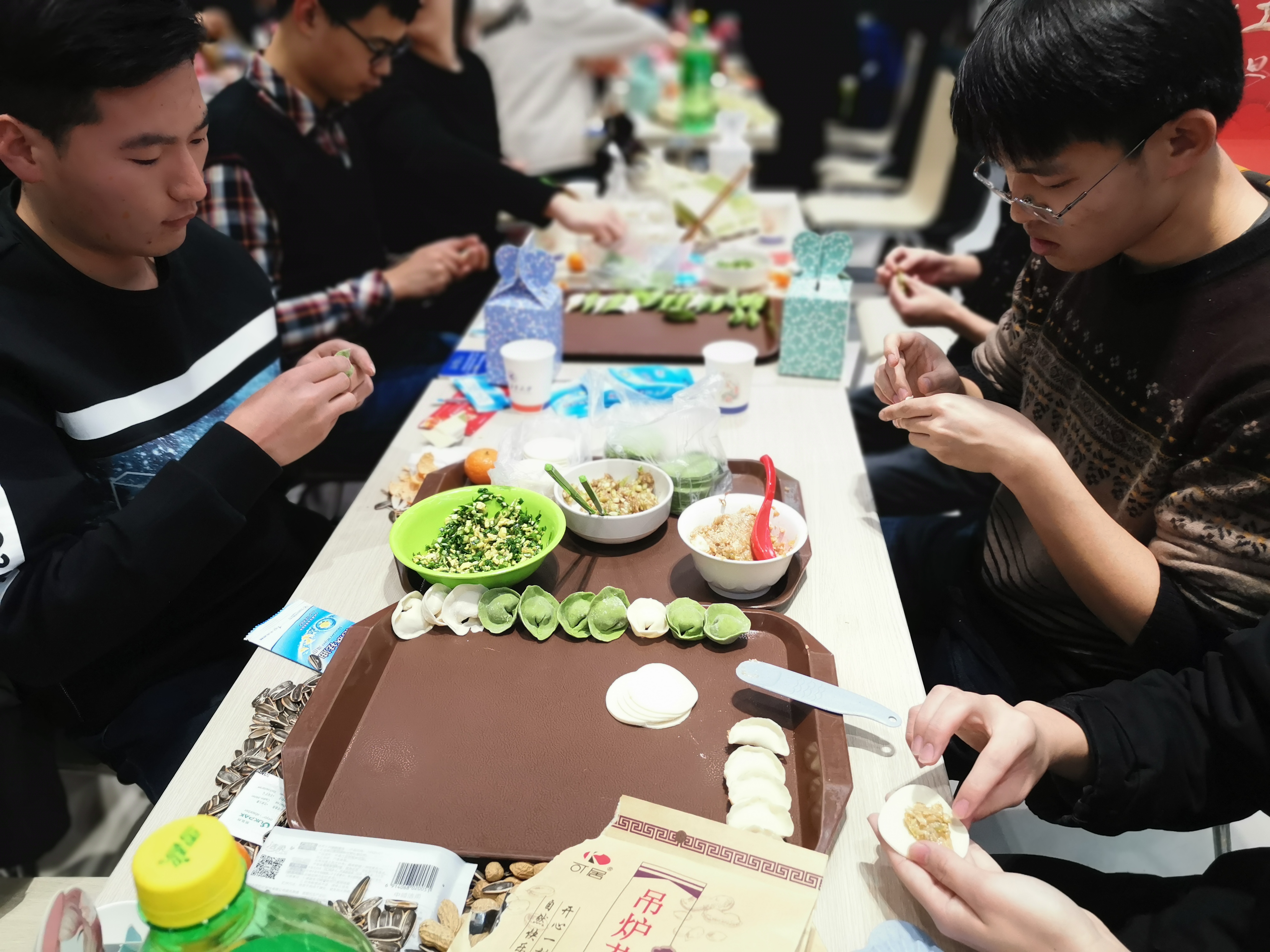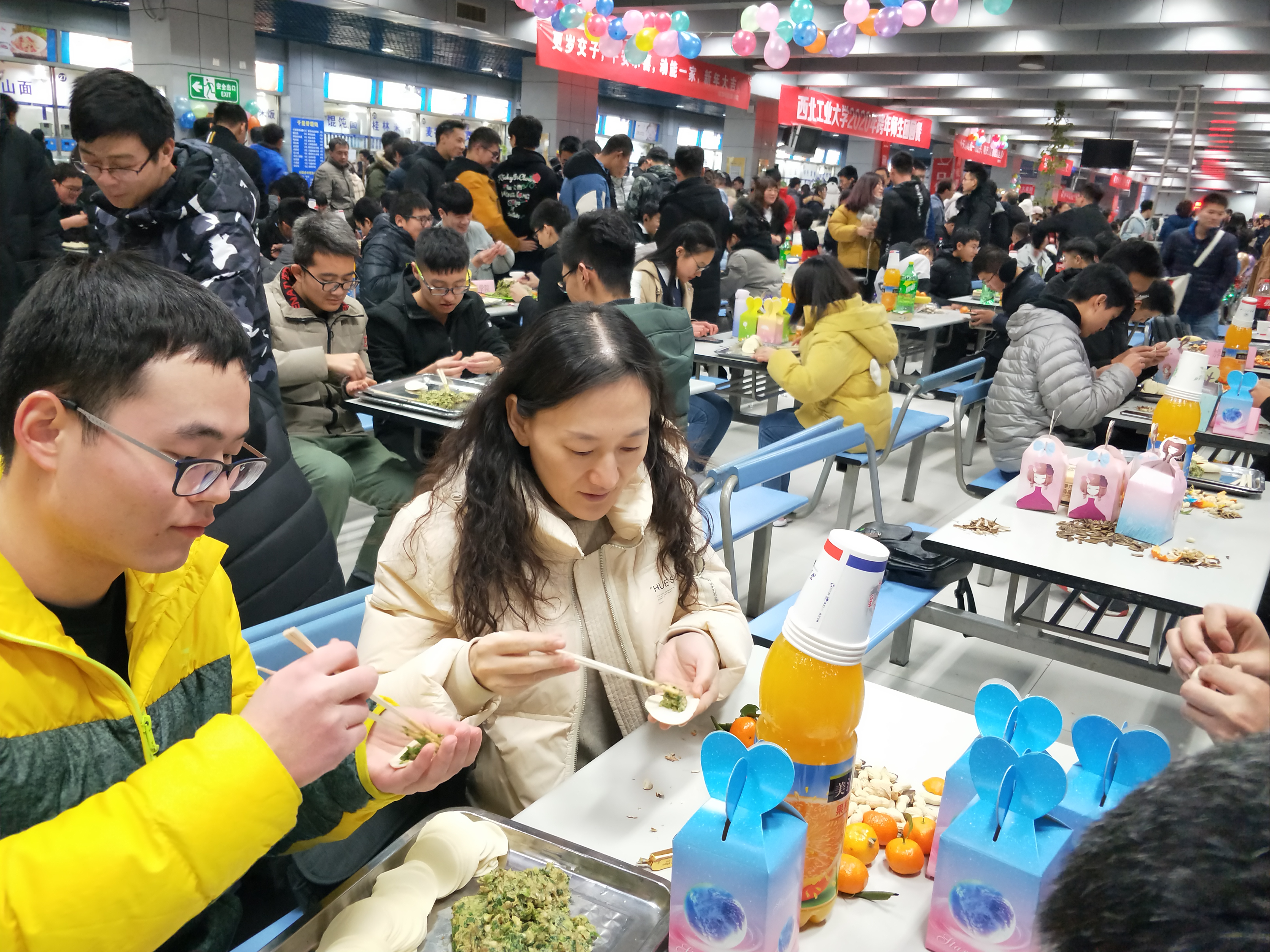 夜幕降临,万众瞩目的跨年活动拉开帷幕。跨年团圆餐在两校区员工餐厅拉开帷幕,williamhill官网师生领取了饺子皮和饺子馅后,围坐在一起,开始了自己的包饺子之旅。williamhill官网经理唐硕、党委副书记(主持工作)岳晓奎,副经理秦飞、张科,党委副书记常威威、王强以及班主任、辅导员、导师代表、公司办公室老师等来到现场,与同学们一起包饺子、唠家常,和同学们聊着这一年的学习与收获,表达对同学们新年的期许与祝愿。随着热气腾腾的饺子一盘接一盘地端上桌,同学们一齐举杯,共贺新年,现场气氛其乐融融。公司校领导与williamhill官网的同学们亲切交谈,表达公司对同学们的关心与爱护,了解员工心中所思所想,并对同学们送上新年祝福。同学们发挥奇思妙想,激情创作,各种形状的饺子诞生。有的饺子中包裹着硬币和花生,吃到的同学收获了大家真诚的祝福。团圆餐其乐融融,节日氛围浓厚。最后,在“包饺子大赛”、“倒念词语比赛”等形式多样的活动中,包饺子活动圆满结束。