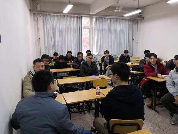 魏才盛跟大家分享了自己在学术工作中的所见所思,特别是关于参加工作和继续深造的看法,建议大家要对自己有一个清醒的认识,知道自己能做什么、想做什么之后再对以后进行规划,找到属于自己人生道路;张光辉介绍了自己在研究生生活的感悟,并且跟大家分享了在专业知识方面自己的学习方法,同时提醒大家在研究生阶段的课程学习与自己兴趣方向之间找到一个平衡点,让知识助力兴趣,兴趣激励学习。