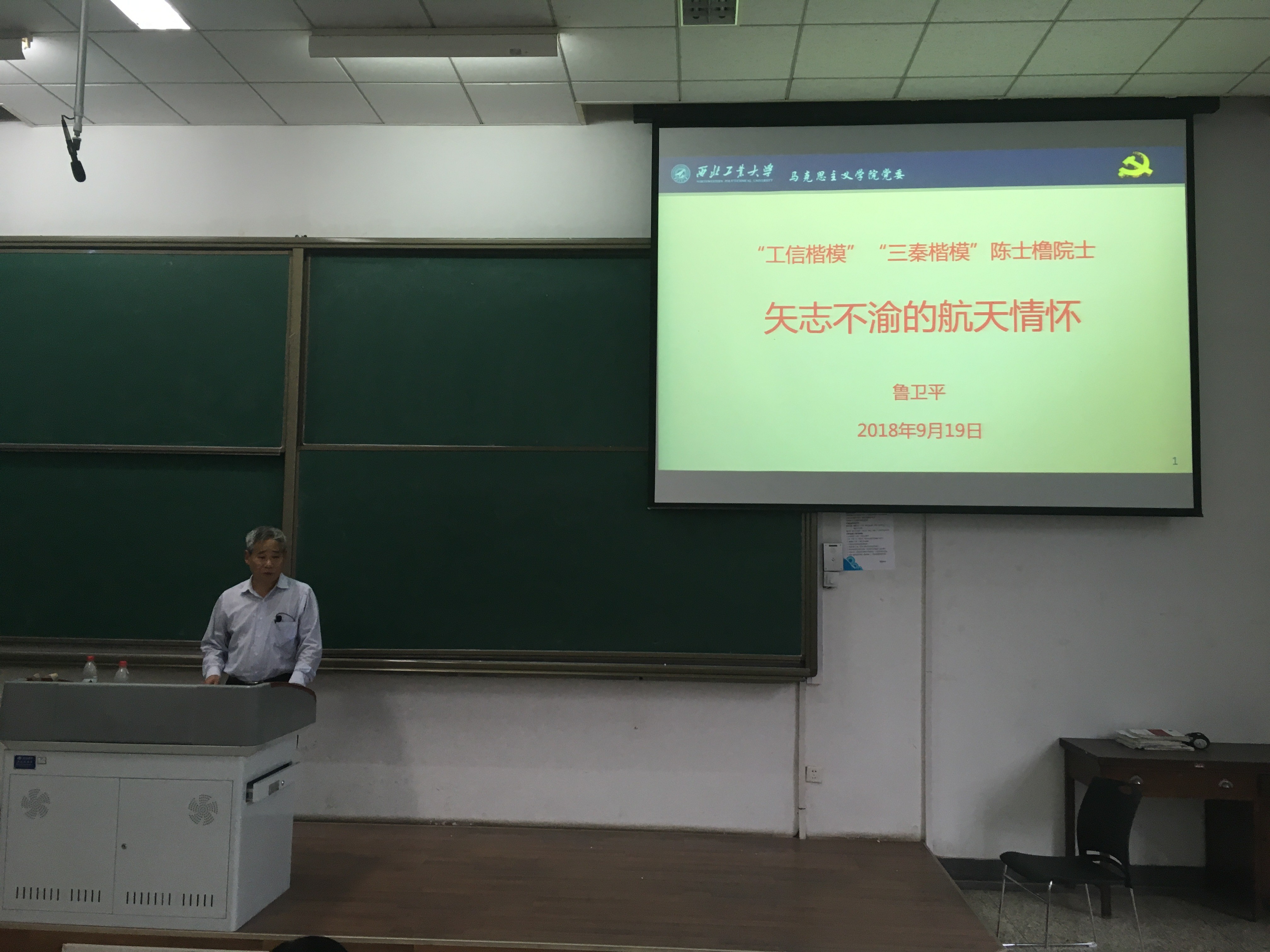 接下来,鲁卫平向2018级大一新生讲述了陈士橹院士的求学和执教历程,包括在西南联大、莫斯科航空公司进修的小故事。让同学们充分了解到陈士橹院士勤学苦读、立志航天报国的精神以及在航天领域的地位与影响,并呼吁同学们向陈士橹院士学习。