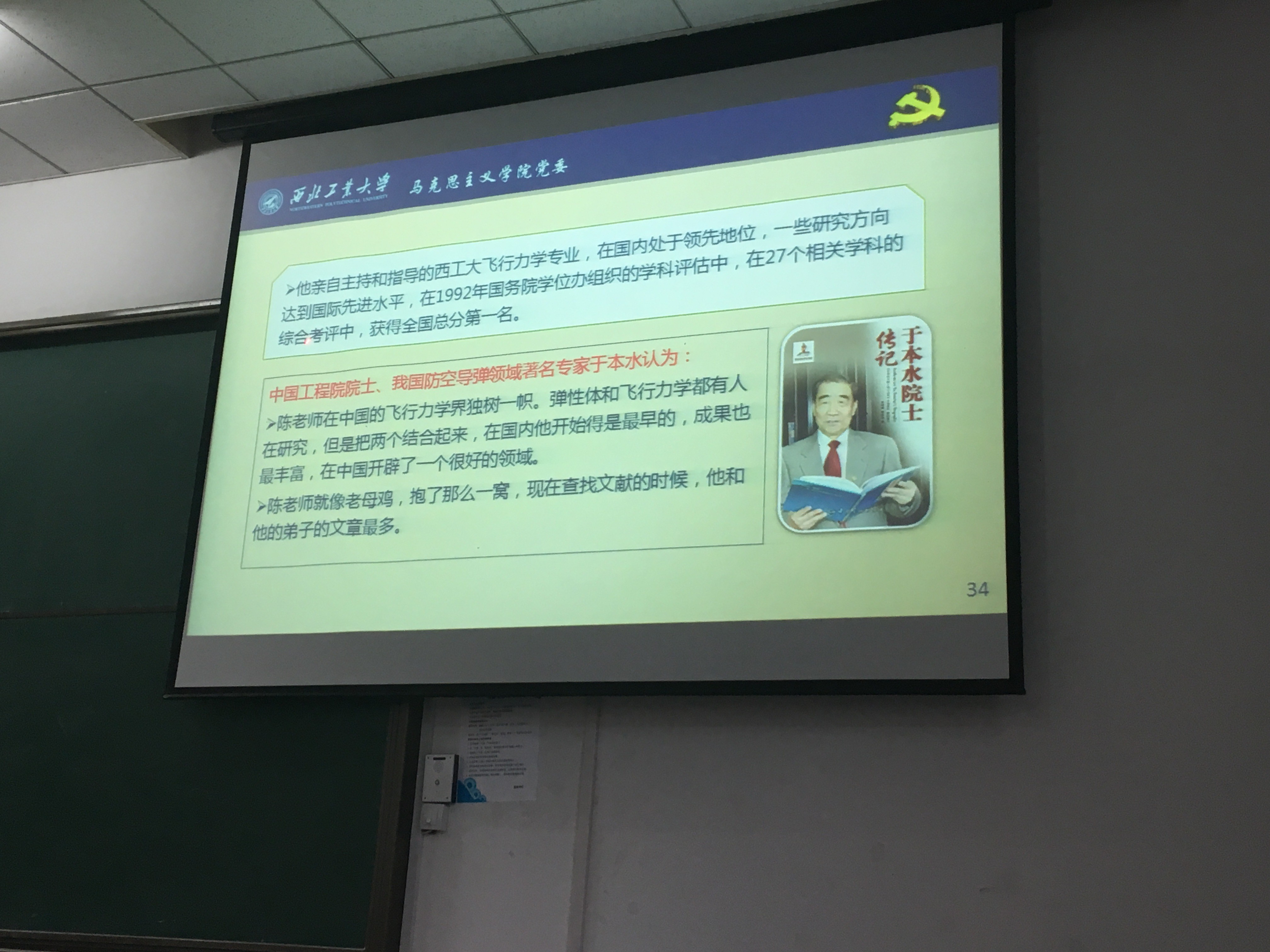 随后,鲁卫平通过几个先进事迹的分享,充分展现了陈士橹院士勤奋刻苦,追求卓越,勇于担当责任的精神品质,在场同学均深有感触。陈士橹院士服从组织决定,勇于担当责任,积极投身航天新征程,创建了williamhill官网宇航工程系,被誉为宇航工程系“三个老母鸡”之一。陈士橹院士严谨治学,厚德仁爱,践行教书育人职责,高瞻远瞩,培育新人,先后培养了我国第一、二位飞行力学博士和博士后,亲自培养硕士生、博士生、博士后50余名。他们当中的许多已经成为我国航天和国防科技工业领域的栋梁。陈院士还积极培育和锻炼新人,为后续发展积蓄了人才资源和科研工作经验。