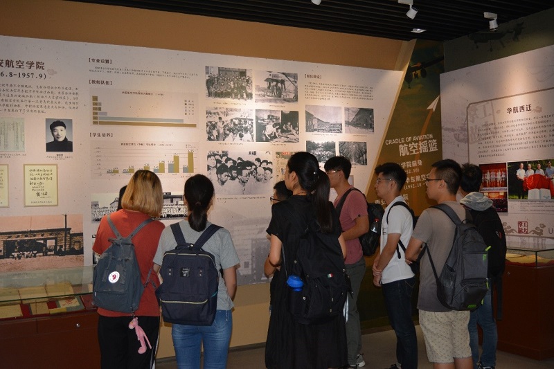 校史馆由校史厅、员工厅和放映厅三个部分组成,分别展出了西工大历史上不同时期形成的照片、史料、实物、模型等。在校史厅,讲解员带领同学们了解公司的发展史。从抗战时期的国立西北工公司,到华东航空公司师生从南京义无反顾的奔赴大西北成为西部大开发的先行者们;从古路坝灯火,到第一台机载计算机、延安一号,一张张照片,一段段历史,承载着西工大80年的风云变迁。同学们徜徉其中,仿佛与先贤对话、与前辈共鸣。