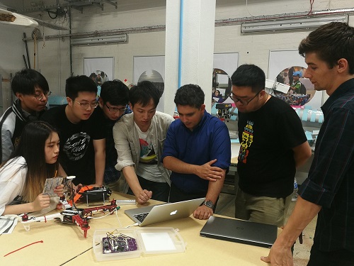 在为期两周的课程学习之中,同学们学习了涡流、编程等方面的理论知识,也结合实例进行了相关实验,了解计算机在航空航天领域的更多应用,在课程的最后环节,同学们亲自动手制作四旋翼飞行器并成功试飞。为了及时消化当天所学知识、加深学习体验,同学们在带队老师的促成下组成了讨论分享小组,在每天的课程学习过后进行答疑、分享与总结。