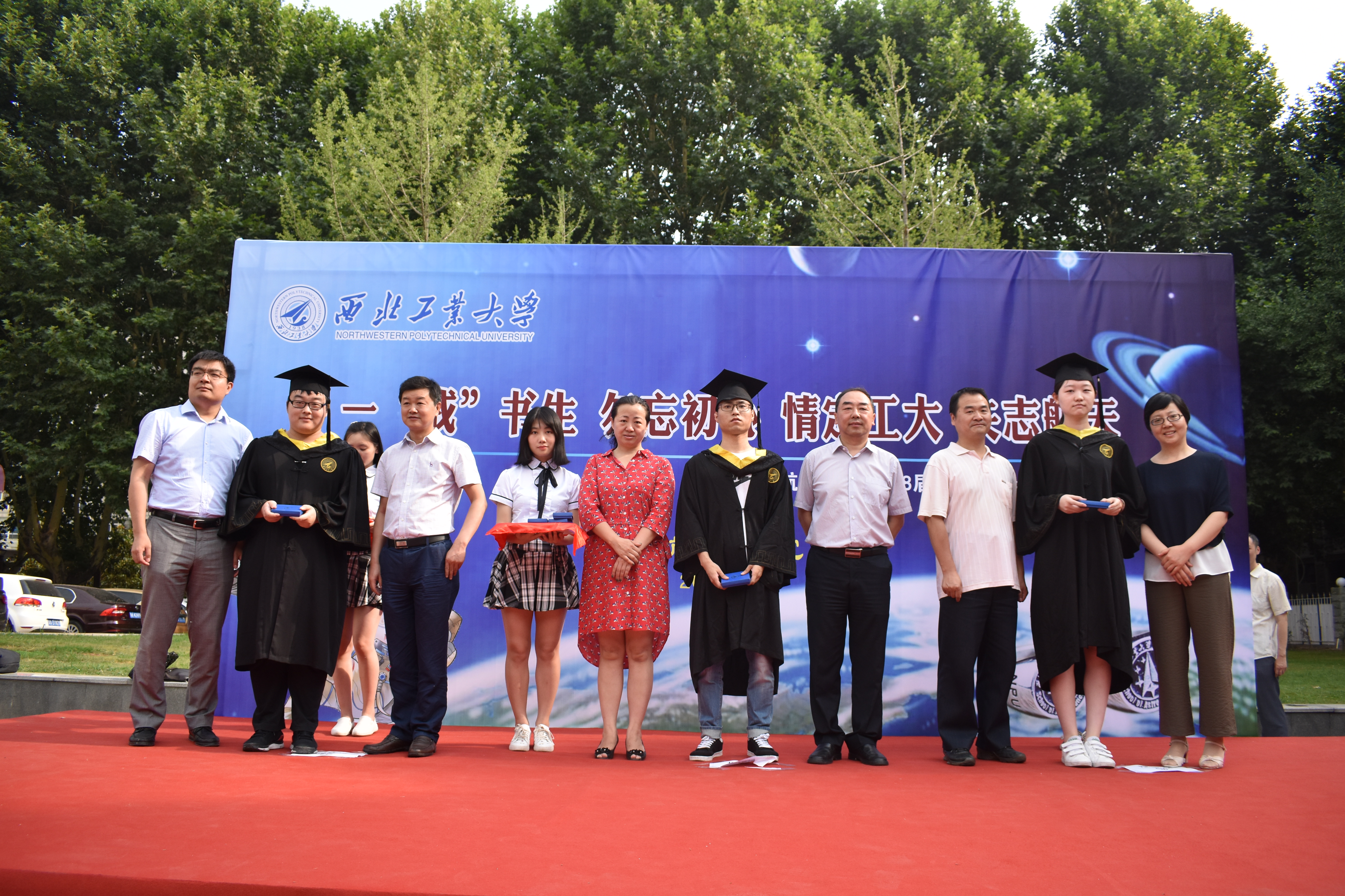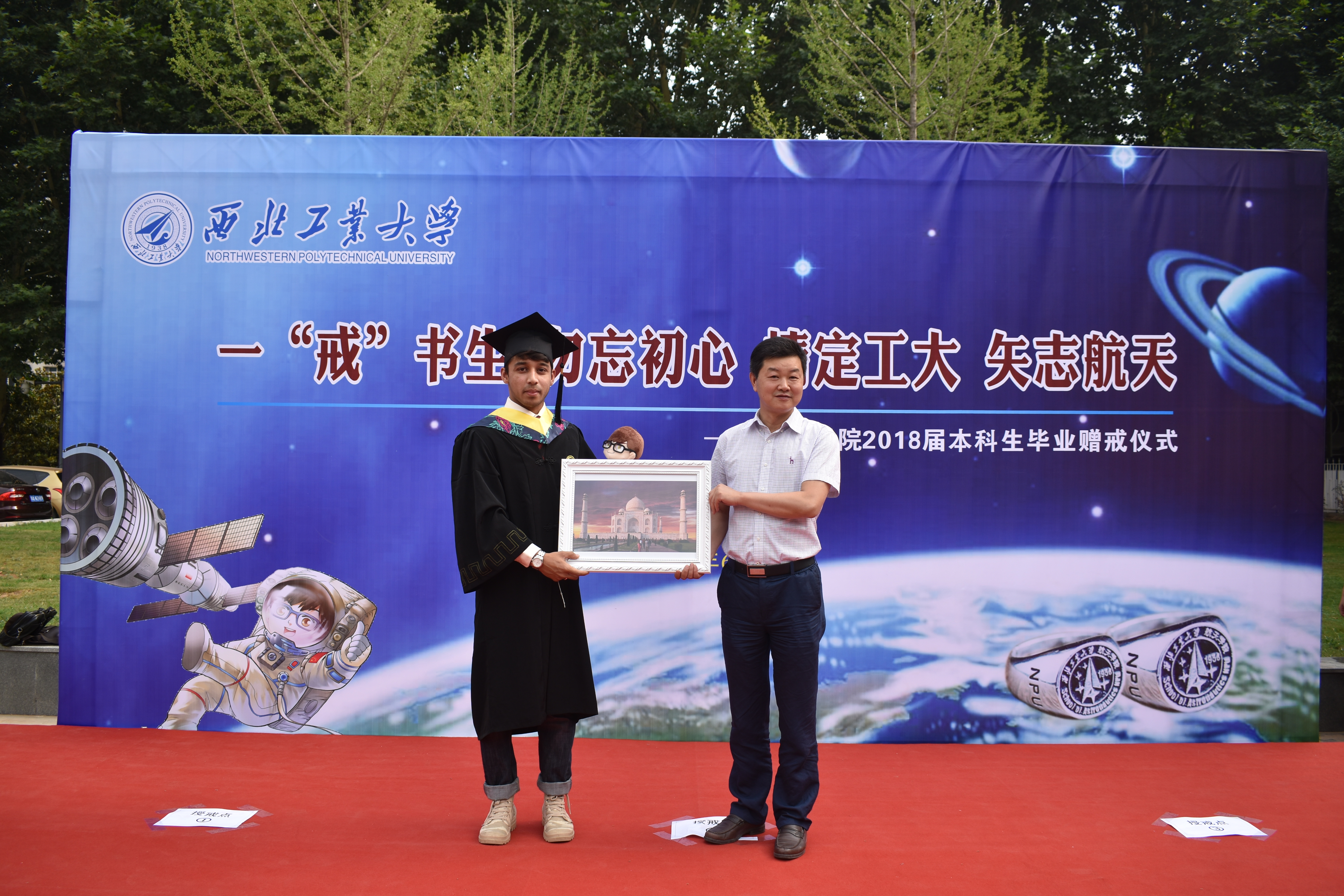 最后,williamhill官网领导及各小班班主任为每一名毕业生赠送了“航天戒”。航天戒是“公诚勇毅”的校训与“航天精神”相结合的文化产物。williamhill官网的老师们希望通过航天戒来提醒即将踏上新征程的航天学子在新的领域中勿忘初心。
