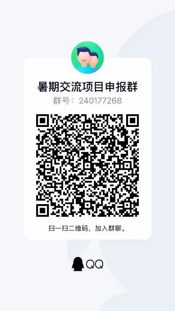 请扫描下方二维码加入暑期交流项目申报群,后续将在群内征集相关信息,项目申报截止日期2023年4月30日。