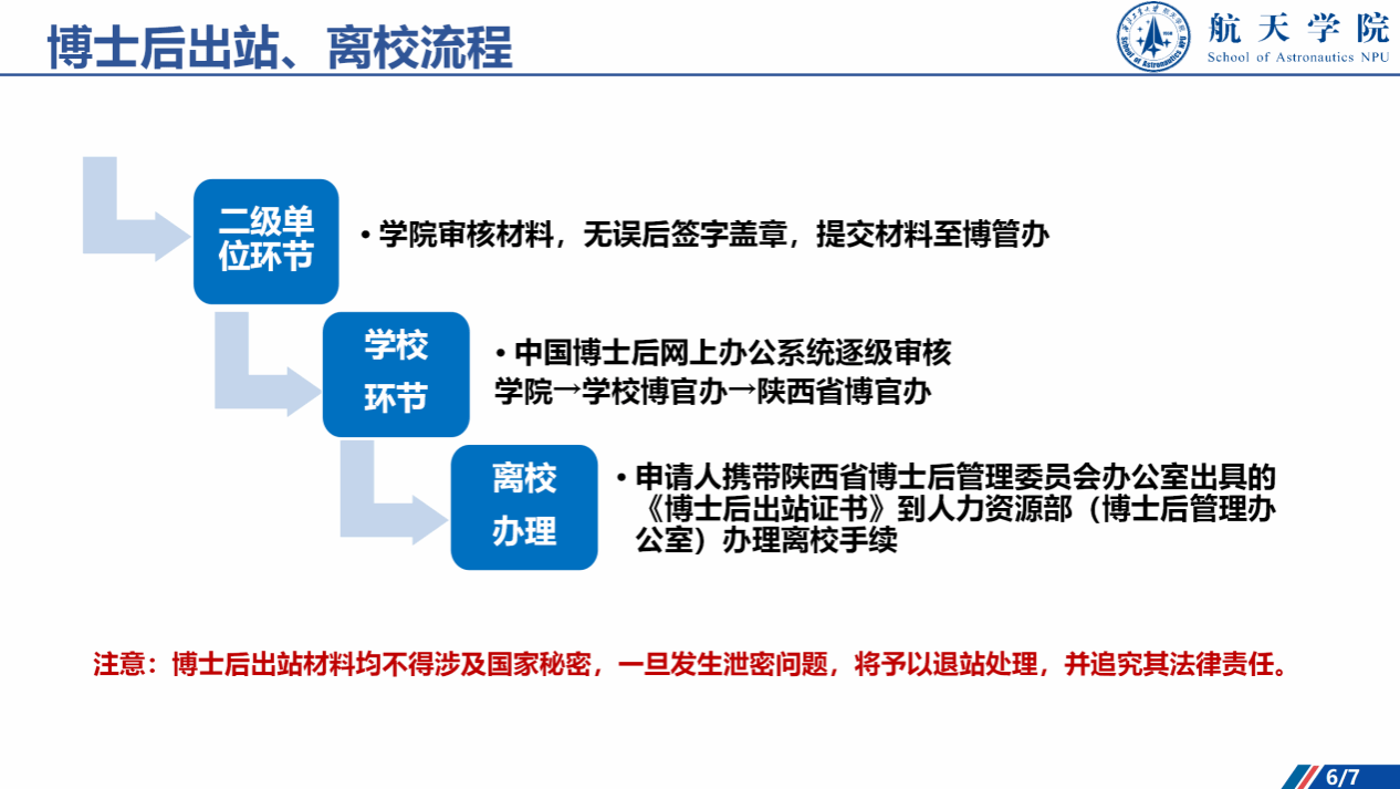 博士后聘期考核、退站、出站、离校手续办理流程及相关材料